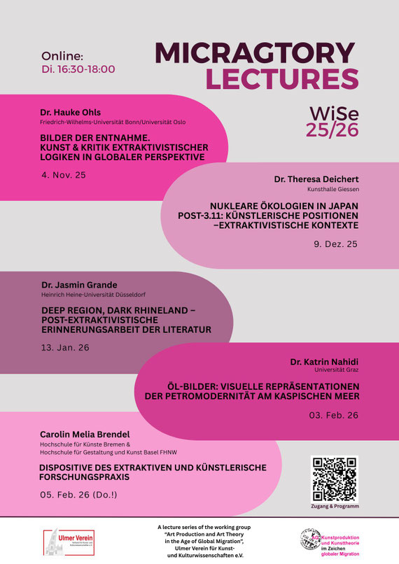Neben der großflächigen materiellen, aber endlichen Mobilisierung von Bodenschätzen und ihrer Umwandlung in flüchtigere Energiezustände, deren dramatische Konsequenzen für das Leben auf der Erde akut sichtbar sind, betris der Extraktivsmus hier auch unterschiedlich gelagerte Dimensionen menschlicher, nicht-menschlicher und mehr-als-menschlicher Migration, so dass die Vortragsreihe nicht zuletzt zum Nachdenken über einen erweiterten Migrationsbegriff im Zeichen des Planetarischen anregt.
